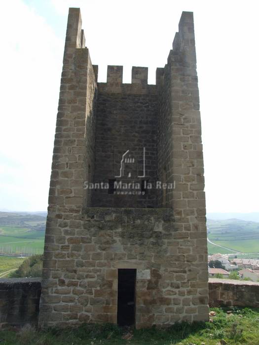 SE TRATA DE UNA FORTIFICACIÓN levantada sobre un cerro dominante con objeto de defender la zona de posibles incursiones enemigas, primero contra los moros asentados en la Ribera navarra, pero más adelante también fue útil contra los castellanos. Cuando llegaron los canónigos franceses, en el lugar subsistía una menguada población con una modesta parroquia dedicada a San Juan Bautista. Como se ha dicho, ya los romanos habían elegido este punto para erigir un castellum. Pero la construcción del Cerco fue iniciativa de los canónigos de Toulouse, pues con ello no sólo se defendía el territorio sino que también se contribuía al asentamiento y seguridad de la población. No hay que olvidar que cuando se les encomendaron estas tierras, su primera misión era consolidar el poblamiento. La documentación refleja que en su edificación puso especial “esfuerzo y gasto” el primer canónigo tolosano que ejerció de rector, Hugo de Conques, quien pudo desplazar mano de obra del sur de Francia. Tal tesis se basa en la presencia en esos primeros años del priorato franco de un maestro de dicha procedencia, llamado Forz mazoner, quien se afincó en Artajona donde murió en 1153. Las obras del recinto comenzaron en 1085, cuando se hicieron cargo del lugar los canónigos de San Saturnino, y habían concluido en 1110. En efecto, dos documentos de 1109 indican que los tolosanos habían construido la iglesia desde los cimientos, las casas y las torres, cuya fortaleza había salvado la localidad del ataque de los enemigos (Hanc ecclesiam nos funditus construximus cum domibus et turribus et cum maximo labore et maiore missione; y más adelante quia nisi esset fortitudo quam nos fecimus, Artaxona fuisset destructa ab inimicis vestris et etiam a mauris). La traza irregular de forma arriñonada que presenta el Cerco de Artajona se debe a que su fábrica se adapta a las sinuosidades del terreno. En sus extremos oriental y occidental los muros descansan directamente sobre afloramientos rocosos. Sigue el modelo de fortificación medieval, formado por una serie de torres prismáticas levantadas rítmicamente, ligadas por lienzos de muro que llegan a media altura. En el caso que nos ocupa, la documentación habla de que tuvo diecisiete torres, de las cuales permanecen erguidas hoy nueve y se conservan los cimientos de otras tres. Sus dimensiones máximas son: 700 m de perímetro, 250 m el eje Este-Oeste y 100 m el orientado de Norte a Sur. La fábrica del recinto se levantó en sillarejo, de mejor calidad el de las torres que el de los lienzos, y en aquellas presenta un mejor trabajo la cara exterior que la del interior. La distancia entre torres es desigual, por lo que la longitud de las cortinas varía entre 9,5 m y 16 m, mientras que su anchura era poco menor de dos metros. Se alternan tramos rectos y quebrados, tanto para adaptarse al terreno como para conseguir la mayor eficacia bélica. El coronamiento de los muros estaba recorrido por un paseo de ronda protegido por un parapeto almenado, como delatan los restos que permanecen integrados en la construcción de una casa sobre la muralla del sector norte. Tampoco son iguales todas las torres, pues cinco dibujan un rectángulo de 7 x 5 m, mientras que el resto son cuadradas, con dimensiones que van de los 5 m a los 7 m de lado. Las torres, siempre adelantadas sobre la muralla, responden al tipo de bestorres, cuya cara interior queda abierta para impedir que se atrincheren en ella los atacantes, en caso de tomar la plaza. Algunas, sin embargo, están tapiadas hasta media altura. Es una modalidad habitual ya en el siglo XII en Francia e Inglaterra, que se difundirá en las murallas urbanas. El burgo de San Cernin de Pamplona, por ejemplo, dispuso de un sistema defensivo similar al del Cerco. En el interior de las de Artajona se distribuyeron tres plantas de estructura de madera de las que no queda nada. En la inferior, a nivel del patio, se almacenaban alimentos y municiones; en la segunda, a la altura del paso de ronda, tenía su puesto el cuerpo de guardia, en tanto que la tercera se apoyaba en el estrechamiento de los muros de la torre al iniciarse el cuerpo de almenas. En todas se abren algunas saeteras. Como todo complejo amurallado, el Cerco de Artajona contaba con distintas puertas de acceso. Tres son las documentadas: el portal de San Miguel, en el frente norte a mitad de la muralla, se abre entre dos torres. Perdió su carácter en 1966, cuando se ensanchó para que pasaran los coches. Por el portal de Remagua se penetraba al Cerco desde el sur y su embocadura está formada por arcos rebajados; de los tres es el mejor conservado. Y por último el portal de Aizaldea, hoy desaparecido, se localizaba en el flanco sudeste del recinto. Las defensas de esta fortificación se completaban con otros elementos. Sin duda el más singular es el donjón o torre cilíndrica, denominada Castillo del Rey, de 12 m de diámetro. Se levantaba exenta del cinturón de murallas en su ángulo occidental. Su función era tanto defensiva como de vigía, pues desde su posición se dominaba un amplio territorio. La presencia de este elemento reafirma la vinculación de esta fortificación con las europeas, particularmente con las de Francia meridional. Aunque no tenemos ningún dato del aspecto formal de su elevación, se conoce que el siglo XVI se usaba como nevera municipal. En las últimas excavaciones han salido a la luz parte de la cimentación y dos hiladas de su alzado. El sistema defensivo del Cerco quedó reforzado con una barbacana, cuya existencia se detecta especialmente en el flanco norte. Con modelos del sur de Francia se ha relacionado la fortificación navarra, particularmente con las bastidas del Suroeste, que indudablemente conocerían sus impulsores, los canónigos franceses. Sin embargo, conviene matizar que el desarrollo de las bastidas es, en general, posterior a la constitución de los núcleos de repoblación peninsulares. En Artajona los habit