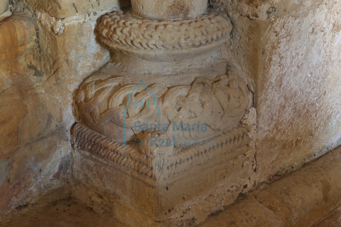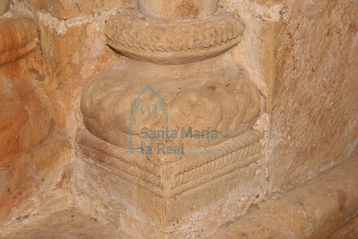 LA ERMITA DE SANTA MARÍA DE VILLAVERDE es una de las construcciones románicas más interesantes del oriente asturiano, al haberse conservado prácticamente intacta desde su fundación. Su planta, orientada canónicamente, mantiene la estructura del románico rural de la zona: una nave que se angosta en la cabecera cuadrada; cubre ésta a menor altura y ambas lo hacen con tejado a dos aguas al exterior. Adosado al muro sur de la cabecera sobresale el volumen de la sacristía, añadida en época moderna, a la que se accede desde el muro de la Epístola de la cabecera. Un pórtico cubierto a tres aguas protege la fachada occidental; éste, cercado por un murete, conserva el empedrado del pavimento y está recorrido por bancos de piedra. Perviven también los restos del cementerio, que hasta la reciente restauración se adosaba al flanco norte, delimitado por una cerca de piedra con un acceso adintelado de sillares, que testimonia el período en que el templo desempeñó funciones parroquiales. En dicha restauración se eliminó, sin embargo, la parte del cementerio más próxima al templo, de modo que en la actualidad existe un pasillo que permite rodearlo en su totalidad. Los muros de la iglesia, retocados con arenisca en ciertas zonas, se construyen con mampostería; y, como es habitual en la mayoría de los templos rurales del románico asturiano, el sillar se reserva para las esquinas, enmarque de vanos y zócalos. Un bisel decorado con dientes de sierra recorre la parte inferior de los flancos sur, oeste y los de la cabecera. También pervive la cornisa original en varias zonas del templo: en los aleros del imafronte y del testero, los muros norte y sur de la cabecera y en el lienzo norte de la nave. El templo conserva también inalterados los vanos originales. Sobre el tejado y marcando el eje del imafronte, se abre una aspillera recercada de sillar y rematada por un arquillo monolítico semicircular, semejante a la que se abre en la fachada occidental de las cercanas iglesias de San Pedro de Con y Santa Eulalia de Abamia. Otras tres aspilleras semejantes calan la parte central del testero y los muros norte y sur de la nave; éstas, al interior, presentan el habitual derrame interno, mientras que la de la cabecera está abocinada y presenta también un alféizar escalonado. El pavimento interior presentaba hasta hace poco unas deterioradas baldosas de barro cocido, que han sido renovadas en la reciente restauración. En cuanto a las cubiertas, la nave se cubre con armadura de madera a dos aguas, mientras que la cabecera presenta una bóveda de cañón, encalada en parte, que arranca de una línea de imposta en nacela, prolongada también en el testero. Cabecera y portada occidental componen los elementos arquitectónicamente más interesantes del templo. La cabecera destaca en primer lugar por sus materiales, pues el muro toral muestra en la zona inferior un paramento de magníficos sillares, que ennoblecen este espacio privilegiado por ser la embocadura al santuario. Al mismo se accede a través de un arco triunfal que se estructura en una doble rosca de medio punto, muy semejante a la homóloga del monasterio de San Pedro de Villanueva. Dicho arco apoya a cada lado en dos columnas de fuste liso acodilladas, cuyos capiteles y basas presentan un variado repertorio escultórico; los capiteles se componen de un cuerpo troncopiramidal, con un astrágalo muy desarrollado y potentes cimacios, también troncopiramidales, que se continúan en el muro toral. En cuanto al muro occidental, único punto de acceso a la iglesia, es también uno de sus elementos de interés. La portada se estructura en una rosca de medio punto bien despiezada, que apoya en jambas de sillar coronadas por impostas sencillas muy desarrolladas en horizontal. La rosca se protege por un guardapolvo, ornado con una doble moldura de taqueado, la interior, en grupos de tres bolitas enfilados, la exterior, muy parecida a la de San Pedro de Con. Por su parte, las impostas, recorridas en su zona media por una incisión, adornan su borde inferior con taqueado. Este acceso, cerrado hasta hace poco con una reja de hierro, cuenta en la actualidad con una puerta de madera y cristal que permite vislumbrar el interior del templo. Remata este muro una espadaña de doble ojo de medio punto, construida de sillares; su cronología no es fácil de precisar, pero cabe la posibilidad de que sea la original del templo románico. Por otra parte, este modelo de organización de la fachada occidental es frecuente en los templos románicos de otras zonas de Asturias y de fuera de la región, particularmente en algunos templos románicos rurales del Oeste costero francés, como la iglesia de La Madeleine de Clisson (Loire-Atlantique), la de Saint Laurent de Forges D´Äunis o la de Nôtre Dame de Romaziéres (Charente Maritime). Los únicos elementos de fábrica añadidos a la construcción original son la sacristía y el pórtico. La sacristía, iluminada mediante un óculo abierto en su muro meridional y otro vano en el occidental, presenta un acceso abierto en la cabecera, de estructura adintelada y buenos sillares. Presenta el mismo pavimento de barro cocido de la nave. Por su parte, el actual pórtico que protege la fachada occidental es un añadido de fábrica moderna, construido, seguramente, sobre un cabildo preexistente y actualmente muy restaurado; sus flancos norte y sur presentan sendos bancos corridos y su pavimento es de cantos rodados. La escultura monumental de Santa María de Villaverde se concentra en canecillos, portada y arco triunfal. Se conservan canecillos originales en varios muros, que responden a la tipología románica de perfil en caveto, con la zona cóncava resaltada en casi todos. Pervive una hilera de canecillos en el alero norte de la cabecera, alguno de ellos esculpidos: el primero desde el testero -que parece rehecho por su buena conservación- se recorre por una banda rectangular; el tercero, muestra quizá u