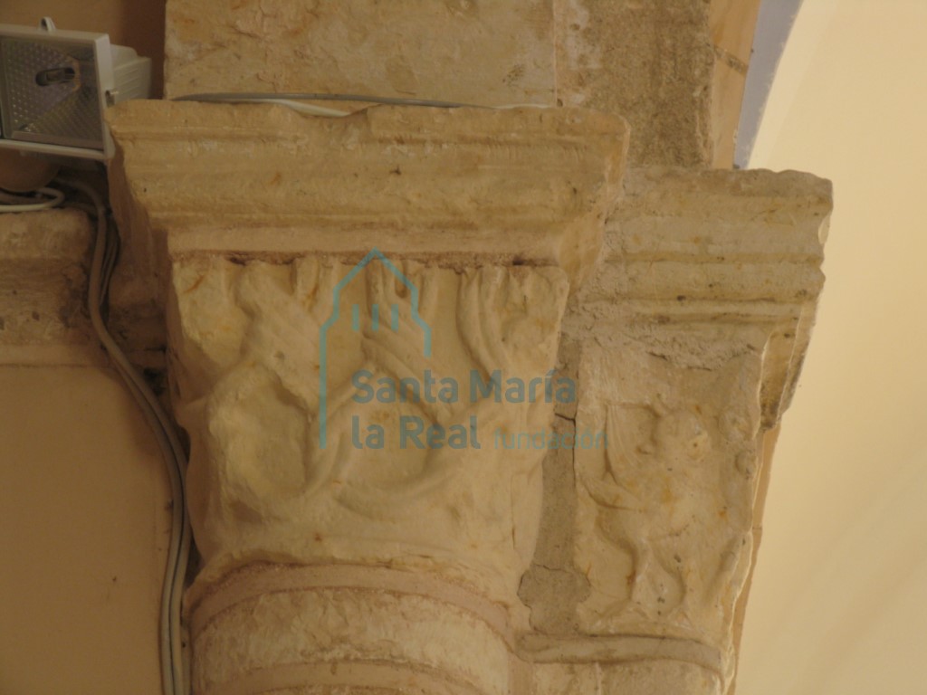 LA IGLESIA SE EDIFICA sobre unos terrenos en los que anteriormente se encontraba una pequeña ermita, la del Santo Cristo del Refugio. Los planos del templo actual se hicieron siguiendo las directrices de Jerónimo García Burgos, aunque Javier Cabello también intervino en estas obras supervisando el traslado de los restos de la ermita de Nuestra Señora de la Serna. La nueva iglesia tiene una sencilla cabecera semicircular orientada al norte, planta de cruz latina con una sola nave y crucero marcado en planta, construido todo ello con mampostería reforzada por sillares en las esquinas, vano y cornisa. Las obras de construcción de la iglesia comenzaron en 1942 y, como ya hemos apuntado antes, en ellas se reaprovecharon materiales de origen románico recuperados de la primitiva iglesia parroquial, ahora ermita de Nuestra Señora de la Serna. En el lado occidental de la nave encontramos una ventana con forma de arco de medio punto que apoya en columnitas que están coronadas por capiteles originales románicos reutilizados. En cada uno de ellos se esculpe una pareja de aves que juntan sus cabezas en la esquina de la cesta. Por otro lado, encontramos en la parte alta del brazo oeste del crucero numerosos testimonios románicos: embutidas en el muro tenemos varias metopas con estrellas de cuatro puntas y entre ellas canecillos de proa de barco, imitando una cornisa. Sobre esta especie de cornisa se han colocado dos pequeños capiteles vegetales con hojas esquemáticas con crochets en las esquinas con una pieza abilletada haciendo las funciones de cimacio. Se reaprovechan también piezas para construir una ventana de arco de medio punto con columnas y capiteles también reutilizados en los que, a pesar de la altura a la que se encuentran y del ennegrecido de la piedra, todavía se puede ver tallado en uno de ellos una sirena de doble cola, motivo decorativo muy utilizado en el románico segoviano. En el interior de la iglesia los restos románicos han sido reaprovechados principalmente en la cabecera. Se accede a ella por un gran arco triunfal de medio punto doblado sostenido por columnas acodilladas; la rosca interna lleva capiteles sencillos, uno de ellos con dos toscas hojas de acanto dobladas en las esquinas y el otro decorado simplemente con una cinta doble que se dobla formando grandes lazos. La rosca externa apoya también en capiteles más desgastados en uno de los cuales se puede ver la lucha entre dos guerreros que parecen ir vestidos con cota de mallas y portan los escudos en la mano izquierda mientras que en el otro capitel aparece una escena mitológica con un centauro colocado entre una pareja de grifos. En el presbiterio encontramos dos arquerías de medio punto cegadas que apoyan en pequeñas columnitas con capiteles vegetales muy deteriorados. También es de medio punto el arco que separa el presbiterio del ábside y que es recogido por capiteles con hojas vegetales adornadas con crochets desarrollados exageradamente que acaban ocupando casi toda la superficie de la cesta. La pila bautismal del templo, que también presenta trazas románicas, está ubicada en el brazo este del crucero. Mide 110 cm de diámetro y 101 cm de altura, apoyándose sobre un pie nuevo de cemento, y está decorada con nueve grandes gallones tumbados entre los cuales se intercalan pequeñas veneras y sobre ellos una cenefa de entrelazo que recorre toda la circunferencia de la pila.