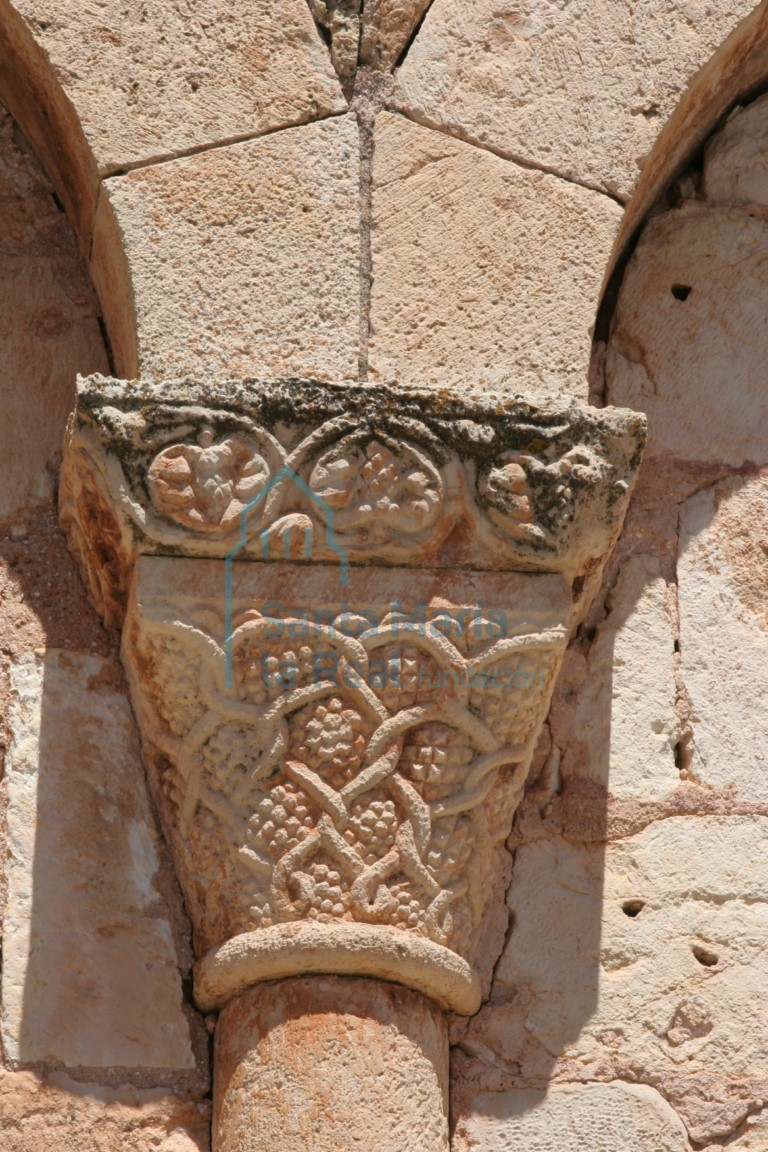 Capitel con tallos entrelazados de la arquería desde el exterior