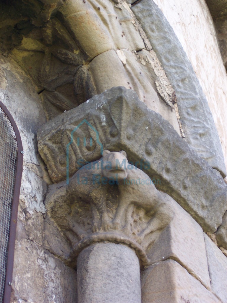 AL IGUAL QUE EN EL CASO de Baldornón, la primera mención documentada a la parroquia de Ceares aparece en el testamento de Ordoño II, fechado el 8 de agosto de 921, que Fernández Conde considera una interpolación del obispo don Pelayo, según el cual el monarca confirma diversas donaciones y concede otras nuevas a la iglesia de San Salvador de Oviedo, incluyendo la iglesia de Ciares. La iglesia de San Andrés de Ceares, aunque muy modificada por sucesivas ampliaciones y reconstrucciones, aún conserva trazas planimétricas y elementos arquitectónicos que la vinculan a la corriente internacional del románico. La iglesia, ya modificada en la época en que la visitó C. Miguel Vigil, fue destruida durante la guerra civil, después de haber sido convertida en almacén de municiones. De su fábrica primitiva se han conservado el ábside, el arco triunfal, de gran interés por los repertorios iconográficos de sus capiteles, y la portada oeste, aunque ésta apenas conserva más que las trazas y una línea de imposta. Originalmente fue una iglesia de una sola nave de cortas dimensiones y de ábside semicircular precedido de tramo recto. Aquella estructura ha sido alterada por una serie de añadidos que incluyen naves laterales, comunicadas con la central por un único hueco, sacristía y dependencias auxiliares y pórtico frontal. El arco triunfal es ligeramente apuntado y de una única arquivolta desornamentada, que está envuelta por un guardapolvo decorado con motivos vegetales. Las columnas pareadas que sustentan el arco concentran la riqueza decorativa de esta iglesia, aunque sus fustes, como evidencian el color y el material, se deben a un añadido reciente, ya que los originales se habían perdido. El primer capitel exterior del lado izquierdo presenta una abigarrada escena en la que animales y hombres se adaptan al cuerpo escultórico sin apenas dejar espacios libres. El motivo principal es un grupo conformado por dos leones que se levantan sobre sus patas traseras y giran sus cabezas para enfrentarse. Entre ellos, destaca la figura de un hombre de rostro barbado y sereno. A cada lado de esta escena principal se pueden apreciar otras dos figuras de hombres, cuyos cuerpos, ataviados con túnica o traje talar, presentan una talla más suave que la de las cabezas. Para Etelvina Fernández ésta es una de las imágenes de las que se servían en época románica para ilustrar la temática del castigo de los pecados: el tema de la lucha entre el león y el hombre es recurrente en la iconografía románica, aunque tiene dos vertientes bien diferenciadas en cuanto a significado. En unos casos aparece una escena en la que un león, o dos, luchan contra un hombre, indicando simbólicamente la lucha del bien contra el mal; en otras variantes, como es el caso de Ceares, la imagen muestra un momento más específico de esa lucha: el de la derrota y posterior castigo. El hombre que aparece en el centro de la composición de Ceares representaría al pecador, y los leones, que se vuelven para atacarle y además están sostenidos por sus patas traseras con lo cual pueden inmovilizarlo con las delanteras, el castigo del que no podrá escapar. El segundo capitel de esta jamba, del lado interior del ábside, presenta los tradicionales motivos vegetales, con grandes hojas lanceoladas, de aspecto algo geometrizado, pero con detalles de gran naturalismo en la talla de los nervios. Sobre las hojas se dispone una fila de volutas en espiral. Como remate de ambos capiteles, se sitúa una moldura decorada con roleos. El primer capitel del lado derecho resulta el más interesante del conjunto y presenta una escena cinegética, la montería del jabalí, que también se encuentra en otros templos próximos de la zona de Villaviciosa. Como en el caso anterior, también aquí hay gran número de figuras que dan origen a una escena de mayor dinamismo. Lo más destacado es la figura de un jabalí, de grandes proporciones, al igual que la figura del montero situado en el centro del capitel, que parece estar sujetando el hocico del animal. A ambos lados se disponen parejas de hombres, pertrechados con cuerno de caza, cuchillos, palos y lo que puede ser una pieza ya cobrada. A los pies de estas figuras aparece un perro de presa. El resultado de esta disposición de las figuras y las masas es una composición perfectamente equilibrada, en la que la escena principal, el momento en que el jabalí es alanceado, está en el centro, y los personajes se distribuyen según su participación más o menos directa en la caza. La cacería es una actividad que se ha venido representando en las manifestaciones plásticas desde la antigüedad y, ya en la Edad Media, la representación de escenas cinegéticas, preferentemente de caza mayor (osos, jabalíes...) alcanzó gran difusión y éxito como motivo ornamental de multitud de objetos y superficies susceptibles de ser decoradas. La caza era una de las actividades cotidianas de la sociedad medieval, incluso entre las mujeres (que solían decantarse por la especialidad de caza con halcón), de modo que la familiaridad de las imágenes representadas y su propia plasticidad aseguraron el éxito de esta temática decorativa. Asturias no fue ajena a este fenómeno y existen varios precedentes de escenas cinegéticas talladas en piezas del siglo IX, aunque el mayor número de escenas de este tipo pertenecen a la fase románica. Una temática de este tipo conlleva un nivel de complejidad elevado, ya que suele tratarse de una escena de carácter narrativo en la que han de disponerse adecuadamente numerosos personajes en un espacio tan limitado como, en el caso de San Andrés de Ceares, un capitel, aunque, naturalmente, pueden darse muchas variantes; por ejemplo, en Santa María de Narzana sólo aparece representado el momento cumbre, cuando el cazador consigue dar caza a su presa. A medida que avanza el tiempo, las escenas suelen ir complicándose en el número de personajes y, sobre todo,