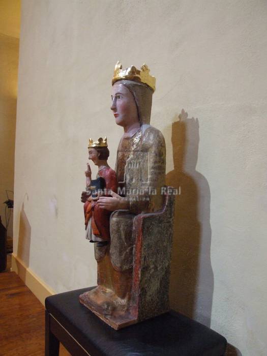 EN EL INTERIOR DEL TEMPLO se conserva una talla de la Virgen con el Niño (71 x 24,5 x 24 cm) que Fernández- Ladreda ha incluido dentro del románico rural, formando grupo con las de Mutilva Alta, Eristain y Urdánoz. De la talla de Óriz sólo es original la Virgen, ya que el Niño corresponde a una época posterior. Iconográficamente repite el modelo Sedes Sapientiae, de forma que María aparece sentada, con una disposición de brazos y piernas rígida, al doblarse las extremidades en ángulo recto. El atuendo está formado por velo ajustado de bordes lisos, túnica y manto, cuyas telas se interpretan con mucha simplicidad y esquematismo, predominando la superficie lisa y plana, salvo en los antebrazos, donde se aprecia una ondulación de la superficie que recuerda a los plegados visibles en otras tallas románicas, como la de Leyún. Mejores resultados ha conseguido el escultor en el rostro de María, al saber transmitir esa expresión de lejanía y respeto tan propia del momento. El trono presenta brazos rematados en curva que recuerdan a obras prerrománicas y románicas (Aquisgrán, Gerona). La restauración que se hizo en 2001 afectó a los brazos, que se hicieron nuevos; a la policromía, que se adecentó; y a la corona extraíble, que se colocó. La imagen se venera como Virgen de los Remedios. Todos los investigadores que la han tratado la consideran románica, del siglo XII, aunque Fernández-Ladreda, en su profundo estudio, aquilata el marco cronológico, ya que el considerarla posterior a las otras del grupo (derivada probablemente de la de Mutilva Alta) le lleva a situarla a finales de la centuria e incluso abre la posibilidad de que se esculpiera en los primeros años de la siguiente, momento de cierta prosperidad en la localidad, a juzgar por la relevancia de las tenencias que ocuparon los miembros del linaje señorial, así como por el número de habitantes. En la capilla del lado sur se ha colocado la pila bautismal (de 100 cm de altura y 102 de diámetro), que puede corresponder a la primitiva iglesia medieval. Consta de un amplio basamento circular, fuste cilíndrico y gran taza semiesférica, lisa.