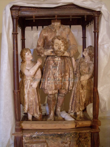 Entre las diez parroquias existentes en Daroca en el año 1230, la de San Juan estaba en séptimo lugar, con 70 vecinos incluidos en sus límites. Fue parroquia hasta 1905, fecha en la que quedó abandonada, iniciándose así una etapa en la que su estado era ruinoso, aunque posteriormente fue restaurada. Su nombre hace referencia al lugar en que se levantó esta iglesia, en lo alto de una de las laderas de la ciudad, casi en el límite del caserío. En el año 2001 el Gobierno de Aragón declaró como Bien de Interés Cultural el ábside de esta iglesia por su valor histórico-artístico. De la planta primitiva sólo subsiste dicho ábside románico, al que se le añadió en el siglo XVII la actual nave. Desde el derrumbe de su cubierta a comienzos del siglo XX, la iglesia había permanecido en ruinas. En la última restauración, a comienzo de los años ochenta del siglo XX, se levantó de nuevo el muro hastial, con una configuración basada en elementos modernos, y se construyó una cubierta en madera. San Juan de la Cuesta es una iglesia de proporciones modestas, de 24 m de longitud, que en su origen tuvo una sola nave con un ábside semicircular que todavía conserva. La anchura de esta nave sería similar o ligeramente superior a la del anteábside o presbiterio, que es de 6,60 m. En origen se trataba de una iglesia de una sola nave rectangular y ábside semicilíndrico, que en sucesivas reformas fue ampliada con capillas laterales. El acceso se sitúa en el lado sur, en el último tramo de la nave. Cuenta con dos ventanas de similar configuración, una de ellas abierta en el centro del ábside semicircular y otra en el muro sur del presbiterio. Se comenzó a construir en la segunda mitad del siglo XII, en piedra sillar con buena técnica de cantería y con esquemas típicamente románicos. En este momento sólo se levantó la mitad inferior de la cabecera, deteniéndose su fábrica. Con posterioridad alarifes mudéjares continuaron la construcción utilizando el ladrillo en lugar de la piedra sillar, debido posiblemente a los problemas económicos y de mano de obra causados por las luchas y conflictos propios de un lugar fronterizo. Este cambio de material no afectó al esquema constructivo original ya que siguieron las directrices del sistema románico del plan inicial. La nave se cubre actualmente con tejado de madera a dos vertientes, fruto de la última restauración, pero es fácil apreciar en el interior el arranque de los arcos fajones y los nervios de la bóveda que se hundió a principios del siglo XX. El ábside lo hace con una bóveda de cuarto de esfera apuntada, y el presbiterio con bóveda de cañón apuntada, ambas en ladrillo. En el exterior de la cabecera se aprecia perfectamente el cambio de materiales en la construcción ya que, levantado en piedra sillar el zócalo y la mitad del semicilindro, que se compone exteriormente a base de siete segmentos verticales separados por medio de seis fustes cilíndricos de columnas adosadas, se continuó en ladrillo por las razones ya explicadas, sin más alteración que la conversión de los fustes en pilastras, rematando el ábside hasta el tejado con aparejo mudéjar de buena calidad. En la parte superior volvemos a encontrar una excelente muestra del arte románico darocense, con la típica cornisa absidal de arquillos y modillones que ya hemos visto en la Colegial de Santa María y en San Miguel, con la peculiaridad de que en San Juan de la Cuesta se realizó en ladrillo. Se trata de una fila de arquillos con una mínima abertura ornamental en su centro que, en razón de tres por segmento (salvo por el último del lado norte en el que sólo hay dos), recorren la parte alta del cilindro absidal apoyando los de los extremos en los capiteles de ladrillo de las pilastras y los interiores sobre los modillones comentados. Por encima de ellos se dispone otra hilera de modillones, igualmente de ladrillo, que sustentan la cornisa. En el segmento central y en el muro sur del presbiterio abren dos ventanas similares con un trazado de arco apuntado, casi aspillerado en el caso de la del ábside, guarnecido por otro lobulado de siete arcos, que siguen modelos de la arquitectura musulmana, muy próximos a los del palacio de la Aljafería de Zaragoza. Al interior un conjunto de cinco arcos ciegos apuntados recorre el hemiciclo del ábside. Estos arcos se rellenaron de mortero para la realización de una pintura mural, de la que sólo nos queda la parte superior aplicada sobre el cascarón absidal, ya que la inferior se picó para sacarlos a la luz durante la última restauración. En los muros norte y sur, correspondientes al presbiterio, también existen dos arcos por lado, aunque en este caso son de medio punto. Todos ellos, tanto los del ábside como los del presbiterio, apoyan sobre columnas con capiteles decorados a base de motivos vegetales. Estos capiteles presentan, en mayor o menor grado de conservación, elementos decorativos basados en hojas lisas vueltas en piñas o bolas en las esquinas, y motivos fitomórficos estriados en sus laterales. Otro elemento del interior del edificio que merece atención es el arco apuntado polilobulado, situado en la embocadura del ábside, a modo de arco triunfal, que todavía guarda en el interior de sus jambas de ladrillo las basas de las columnas del primer plan constructivo. Los restos de pintura mural gótica conservados en el ábside se dividen en dos secciones. En la estrecha banda superior aparece representada la Última Cena, con Jesucristo y sus discípulos sentados tras una mesa. En el registro inferior vemos a San Juan Bautista, bajo una arquería gótica lobulada, que lleva el cordero místico en su mano izquierda y junto a él dos escenas de su vida: San Juan en presencia de Herodes, a su derecha, y encerrado en la prisión, a su izquierda. La fábrica de la iglesia de San Juan de la Cuesta comenzaría a construirse en la segunda mitad del siglo XII, momento en el que tan sólo s