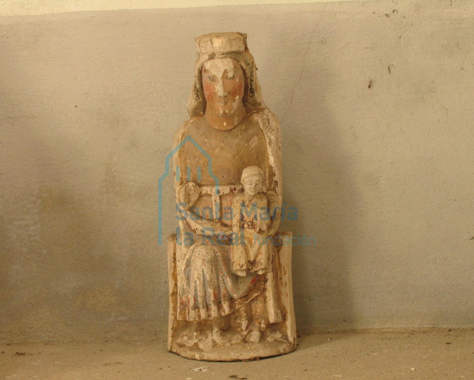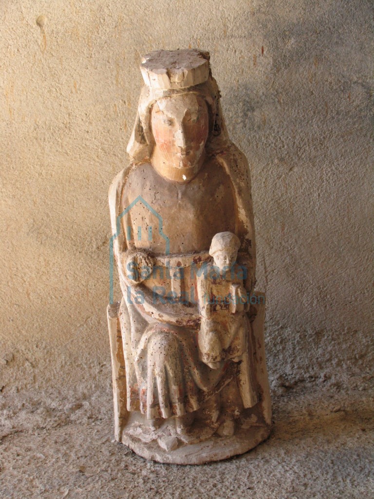 Vista frontal de la talla de la Virgen con el Niño