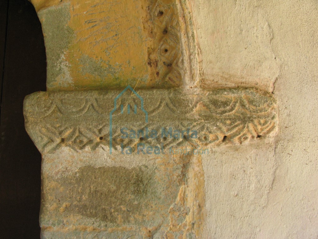 EN EL CENTRO DEL PUEBLO, sobre una pequeña loma, en torno a la cual se dispersa el caserío que conforma la aldea, en su mayor parte deshabitado, se levanta el actual templo de Santa María de Celada, una construcción de tipo popular, reconstruida en 1635 y reintervenida hacia los años 60 del pasado siglo. De la primitiva fábrica románica se conservan algunos elementos. No ha llegado hasta nosotros documento alguno en el que se haga mención al templo de Celada, antes de finales del siglo XIV, cuando, indicando que Santa María de Celada úsala apresentar e instruir el obispo(...), aparece mencionada en la Nómina de parroquias de la diócesis de Oviedo mandada elaborar por el obispo Don Gutierre. A pesar de lo tardío de la documentación, las piezas prerrománicas y románicas que se conservan en la actual construcción nos hablan de una fundación mucho más temprana, que tal vez se remonte al período de la monarquía astur, al que parece adscribirse la pila bautismal de relieves sogueados que se conserva en la iglesia, a no ser que está proceda de otra construcción cercana, como pudiera ser el anteriormente mencionado templo de Santa Eulalia de Poreño. La iglesia fue reedificada en 1635, según reza una inscripción conservada en el templo, y tras perder hacia los años 60 del pasado siglo, según relato de los vecinos, el arco triunfal con sus columnas y capiteles, actualmente sólo conserva de su pasado románico la portada occidental. Presenta ésta una sencilla estructura, compuesta por arco de medio punto envuelto por un guardapolvo decorado con rosetas tetrapelas y apoyado sobre capiteles imposta. En éstos se combinan las mismas rosetas que en el guardapolvo con una serie de círculos enfilados, similares a los existentes en otros templos de la zona, como el guardapolvo de la portada occidental de San Andrés de Valdebárcena, por lo que la datación de las piezas románicas de la iglesia de Celada podría situarse a principios de la decimotercera centuria.