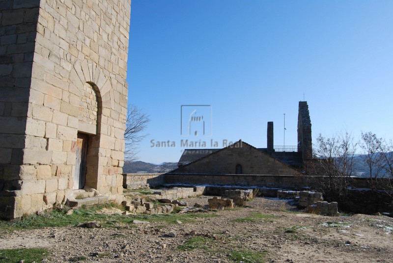 El castillo ocupa la Peña Feliciana, el punto con mejor visibilidad de la loma donde se encarama Sos. Su estructura, como señala Guitart, es la habitual en los castillos altoaragoneses de los siglos X al XII. Consta de un recinto amurallado de trazado irregular, con una esbelta torre en su centro y un torreón cilíndrico con dos hileras de ventanas saeteras en su ángulo noroccidental. Un conjunto que se remataba con la ubicación de la Iglesia de San Esteban, a los pies del alto del castillo. Además, en una sobreelevación más al Sur debió de existir otra fortificación hoy desaparecida que ocuparía el solar sobre el que se levanta el Palacio de los Sada. El castillo, cuyos vestigios todavía pueden contemplarse en la actualidad, no es, sin embargo, el primigenio, ya que en ese punto hubo una construcción anterior, en el siglo x, con que los monarcas pamploneses hacían frente a la frontera musulmana. Fue edificado por Sancho Garcés II de Navarra en el año 970 y, como señala Cabañero Subiza, hay testimonios de la asunción de la piedra en su construcción al menos desde el año 975. Sería reforzado por Sancho Garcés III el Mayor en el 1012. Además, diversas campañas arqueológicas han permitido sacar a la luz la planta de la fortaleza de los años centrales del reinado de Ramiro I (1035-1064) que contaría con una organización distinta a la actual. Seguiría modelos de distribución islámicos, con una planta rectangular con al menos dos torres en el muro norte. De aquel conjunto ha quedado testimonio, además, de la existencia de un patio de armas parcialmente cubierto, amén de añadidos bajomedievales, como hornos para la fundición de metales y un sistema de canalización. La torre que hoy se puede contemplar, no obstante, ha sido clasificada como perteneciente a una época posterior, construida a instancias de Ramiro II el Monje (1134-1137) entre 1134 y 1137 por el Maestro Jordán. Hemos de advertir que gran parte de su aspecto actual se debe a la restauración llevada a cabo por el arquitecto Emilio Larrodera entre 1941 y 1944. Fue erigida en piedra sillar, con unas hiladas que oscilan entre los 28 cm de la hilada menor y los 52 cm de la mayor. Se asienta sobre la roca madre y presenta una planta cuadrada, de 6 m de lado. Pese a su aparente solidez exterior, el actual mal estado de su estructura interna desaconseja su acceso. El último cuerpo posee en cada uno de sus paños una ventana centrada, en arco de medio punto y cegada. Este remate se completa con una hilera de almenas que fueron añadidas en la citada restauración, aunque siguiendo las que había con anterioridad. Asimismo, posee dos puertas de entrada, en los lados norte y sur. La puerta septentrional está cegada, mientras que la meridional vio sus arcos de medio punto modificados con la adición de sillares irregulares, de modo que el acceso ahora es adintelado. Especial atención merece la curiosa solución del despiece del arco inferior, puesto que sus dovelas son irregulares y presentan un ángulo de despiece igualmente irregular. A propósito de esto, conviene comentar la existencia de soluciones similares en, al menos, dos localidades navarras. Se trata de las iglesias de San Juan Bautista de Eristain, en la Valdorba, cerca de Tafalla, y San Miguel de Villatuerta, junto a Estella. Uranga e Íñiguez las engloban en un grupo anterior al románico pleno, con elementos diversos de la arquitectura musulmana, asturiana y carolingia (una inscripción proporciona para Villatuerta datación firme a finales del siglo x). Vemos en ellas las dovelas largas y delgadas, que algunos autores consideran propias de usos constructivos islámicos y que también reconocemos en Sos. Según Uranga e Íñiguez en los dos templos navarros se habían rapado las piedras salmeres para modernizar las puertas en arco de herradura y transformarlas en arco de medio punto. Entienden que en la de Eristain reaprovecharon materiales anteriores, mezclando dovelas grandes con otras más finas y dando como resultado un efecto de cuña irregular. Las dovelas no seguían radialmente el centro del arco, al igual que ocurre en Sos.