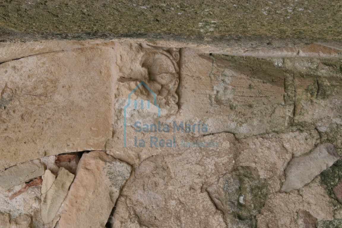 SOBRE LA IGLESIA PARROQUIAL, antes dedicada a Nuestra Señora de la Asunción, señala el antes referido Pascual Madoz que “es un edificio bastante regular y sólido, construido, según una inscripción que se ve en la torre, en el año de 1557; todo de piedra cantería, con bóveda de panderete y bastantes molduras de yeso; tiene una sola nave con 78 pies de long(itud), por 37 de lat(itud), con su buen crucero, y cinco altares de regular construcción”. Es un edificio de notables proporciones, con planta de cruz latina, levantado fundamentalmente en mampostería combinada con sillería en la torre dispuesta a los pies de la fachada meridional, y en los contrafuertes de la fachada norte; con ladrillo se levantó el hoy arruinado cimborrio, cerrado con una cúpula. Fue alzado en época moderna respetando el ancho de la nave y escasos restos de otro románico precedente, y hoy se encuentra inmerso en un lento proceso de restauración que trata de recuperarlo del estado de ruina. Tales obras, y otras que constan a principios del siglo XVII, dejaron en anecdóticos los testimonios románicos de la iglesia, que se reducen a una pequeña portada en la fachada septentrional, un lienzo del muro sur de la nave primitiva, muy reformado aunque aún coronado por los canes a bisel de su cornisa, y parte de la galería porticada que recubría tal fachada, amén de otros restos dispersos de menor entidad y numerosos sillares labrados a hacha, algunos de aristas aboceladas. La semienterrada y hoy cegada portada septentrional consta de arco de medio punto liso y una arquivolta con cuarto de bocel, apeando el primero en una pareja de columnas muy desgastadas. Sí es visible el capitel más occidental, simple cesta troncocónica sin decoración, y el cimacio que lo corona, ornado con tetrapétalas en clípeos y zarcillos, de tratamiento similar a los vistos en la torre de San Miguel de Turégano, entre otros muchos ejemplos. De la galería porticada restan cuatro arcos en pie así como el arranque de un quinto, cegados al reutilizarse la estructura como muro de cierre de la antigua sacristía. Desde el interior de ésta se observa el pretil abocelado sobre el que se alzan las dobles columnas que soportaban los arcos de medio punto, siendo sólo parcialmente visibles los capiteles, todos vegetales y bajo cimacio de nacela, decorados con amplias hojas lobuladas de nervio central hendido y astrágalo facetado, en dos casos dividida la cesta en dos pisos, el inferior liso y separado del vegetal por un junquillo. Los fustes visibles son monolíticos, y apoyan en basas áticas de grueso toro inferior. La cuidada talla de estas piezas, donde se recurre al uso del trépano, parece llevar a fechas tardías dentro del siglo XII o primeras décadas del XIII la construcción de la galería. En el piso bajo de la torre, situada al sur y que reutiliza los muros de una espadaña anterior, se reaprovechó como ménsula un capitel románico de amplias hojas de helecho y marcadas nerviaciones, con remate de volutas y similar tratamiento a los del pórtico, de donde quizás proceda.