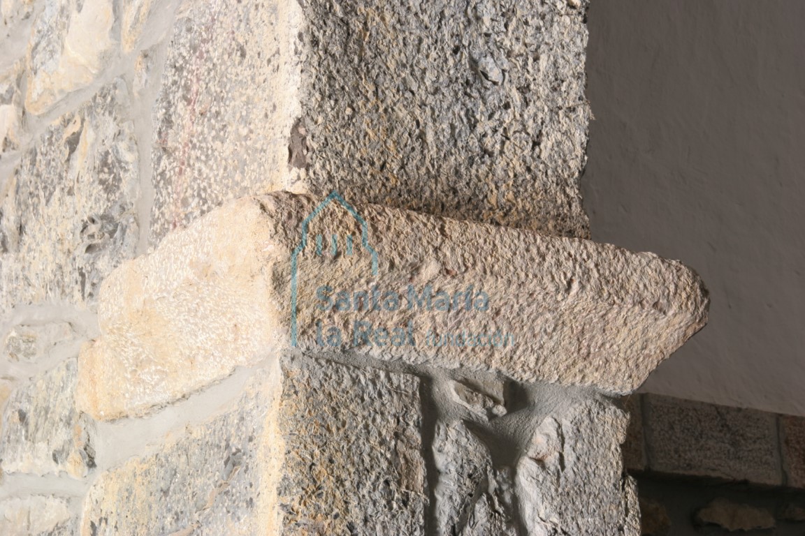 A DIFERENCIA DE LA CERCANA iglesia de Santa María de Mián, de Santiago de Vis no se ha conservado ninguna referencia documental. El origen del topónimo podría estar en relación con un antropónimo de origen latino; en efecto, numerosas localidades deben su actual denominación a un antiguo nombre de persona, por ejemplo, el propietario de una explotación agrícola, cuyo nombre perdura una vez que se ha desarrollado en el entorno un núcleo de población, al que pasa a identificar en su totalidad. Vis podría ser, por tanto, la derivación de algún personaje de nombre Visius. Construcción destacada en el pueblo, la iglesia de Santiago es un pequeño templo de carácter eminentemente rural, de pequeñas proporciones, nave única de cortas dimensiones y ábside cuadrado; la puerta de ingreso, protegida por un pórtico con murete, se articula en arco de medio punto completamente liso y cuyas dovelas superiores se encuentran deterioradas. La fachada se remata en una espadaña de época moderna. La tipología rural y el aspecto tradicional del edificio hizo que fuera frecuentemente fechado como obra arcaizante del siglo XVI o incluso XVII; pero I. Ruiz de la Peña llama la atención sobre la posibilidad de que se trate de una construcción románica, y para ello se basa en la propia estructura planimétrica, el arco triunfal o la bóveda del ábside, además de en algunos rasgos estilísticos, como la ventana de saetera que se abría en el paramento de la cabecera y que hoy día está cegada. En ese sentido, hay que tener en cuenta que las particularidades geográficas e históricas de la zona oriental de Asturias revierten, en las edificaciones religiosas construidas durante la época medieval en esta área, en una serie de características muy concretas, que se mantendrán durante un prolongado período de tiempo y que incluso retardarán la aparición de nuevas soluciones técnicas y estilísticas. Dejando a un lado el grupo conformado por los tres centros monásticos localizados en este ámbito (San Pedro de Villanueva en Cangas de Onís, San Antolín de Bedón en Llanes y Santa María de Tina en Ribadedeva), en el románico rural del oriente asturiano podría hablarse de un conjunto de iglesias diferenciadas en cuanto a sus proporciones o su ornamentación, pero no tanto en lo referido a tipología. Se trata, en la mayoría de los casos, de templos de carácter rural y pequeñas proporciones, de gran sencillez planimétrica, incluso cuando nos aproximamos a la época gótica. Lo más habitual es encontrarse con iglesias de nave única cubierta con armadura de madera y cabecera cuadrada cubierta con bóveda de cañón, un modelo muy difundido en todo el románico rural del norte de la Península. La ermita de Santiago de Vis, si bien presenta una nave de proporciones muy reducidas, es buen ejemplo de todo ello. El paramento mural de Santiago de Vis está levantado en su mayor parte con mampostería de piedra caliza y cuarcita, reservando, como suele ser habitual en las iglesias de recursos modestos, los sillares para los ángulos y los vanos. El interior presenta un aspecto más en consonancia con la época original de construcción; como hemos dicho, lo más probable es que la nave estuviera cubierta, como en la actualidad, con techumbre de madera a dos aguas. El arco triunfal es de medio punto, ejecutado con sillares bien escuadrados. Se trata de un arco triunfal de aspecto muy sencillo y sin ornamentación; a pesar de la ausencia de capiteles troncopiramidales con decoración esculpida, incorpora como punto de arranque de la rosca sendos capiteles impostados y moldurados, encontrándose el derecho bastante erosionado en algunos puntos. En uno de los sillares del pilar izquierdo del arco triunfal se halla grabada en ligero bajorrelieve una cruz de pequeño tamaño, apenas 15 cm de alto, que es de factura reciente. La articulación del muro en el románico de la zona oriental de Asturias no era demasiado frecuente, al menos en los paramentos exteriores, pero es más fácil encontrar el interior de las cabeceras articulado con impostas que sirven de base a las bóvedas de cañón, como sucede en el interior del ábside de testero recto de Santiago de Vis. El edificio sufrió numerosas reformas en épocas posteriores. Además de los añadidos del pórtico y la espadaña, ya mencionados, el ábside fue rehecho y en él se abrió un nuevo vano, una saetera de derrame exterior en el lateral derecho, probablemente en algún momento del período barroco; precisamente en el barroco se fecha el pequeño retablo que alberga una imagen de Santa Catalina; la talla de Santiago es algo posterior. En la cabecera se cambió incluso el pavimento, pasando de ser de tarima de madera a cubrirse, prácticamente la totalidad de su superficie, con cemento; en este sentido hay que reseñar que a los pies de la nave aún se conserva parte del antiguo enlosado. Otro aspecto importante es el estado de conservación actual: el paramento del testero en el exterior presenta una profunda brecha, y el de la nave, a los pies del lado derecho, también acusa signos notables de deterioro. La pequeña capilla de Santiago de Vis es uno de los pocos templos del románico rural del concejo de Amieva que se conservan, a pesar de lo cual su estado de conservación no es el adecuado.
