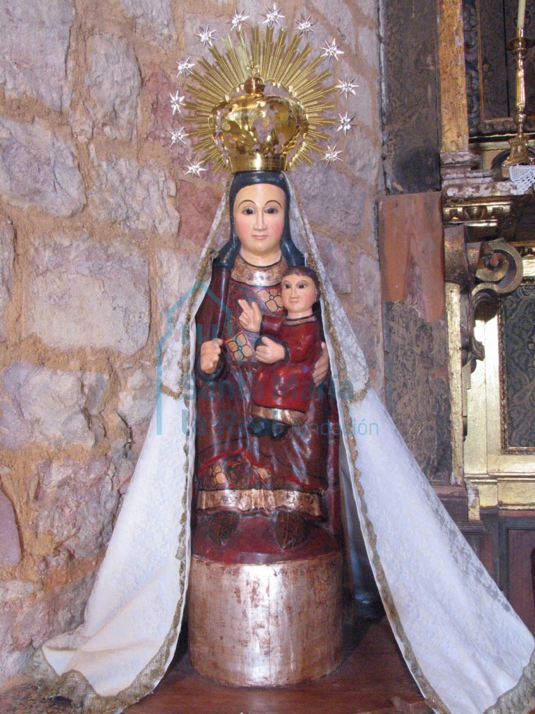TAN SÓLO ES RESEÑABLE en la iglesia parroquial de la localidad la pila bautismal ubicada en la parte noroccidental de la misma y compuesta por una copa troncocónica de 105 cm de diámetro y 84 cm de altura que apoya en un pequeño pie construido con cemento para sujetarla de unos 5 cm de grosor. La decoración de la pila es lisa a excepción de un fino sogueado de la parte superior que recorre toda la circunferencia. En la cabecera situada sobre un pequeño altarcillo se encuentra la imagen de Nuestra Señora de Veladíez o Virgen de Espirdo. La talla, que mide 63 cm de altura, representa al Niño sentado sobre las rodillas de la Virgen, ligeramente girado y bendiciendo con su mano derecha. La imagen pudo tener un origen románico pero sufrió una restauración muy agresiva en la que se reconstruyeron la mano izquierda del niño y la diestra de la Virgen y se cambió el gesto del rostro del niño así como su peinado.