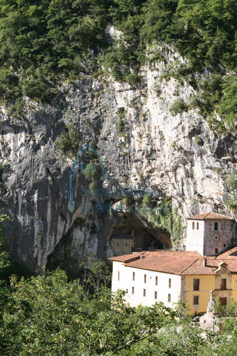 CASI NADA SE HA CONSERVADO de la fábrica medieval de la colegiata de Santa María de Covadonga. Las difíciles condiciones que ofrecía la roca de la cueva para cualquier mínima construcción hicieron que las descripciones más antiguas describan el templo como una iglesia de madera que se sujetaba con dificultad en la pared rocosa. De su entorno inmediato, sin embargo, se han conservado hasta nuestros días dos interesantes piezas que pueden dar buena cuenta de la notable calidad que el conjunto pudo haber tenido. Se trata de dos sepulcros románicos, empotrados en la crujía oeste del piso bajo del claustro de la Colegiata barroca, adosados a la roca y por tanto muy cercanos a la cueva. Estos se estructuran en dos arcosolios que cobijan laudas, construidos con piedra arenisca dorada (excepto las laudas, que parecen de piedra caliza) y rejunteados quizá en la restauración de la Colegiata que llevó a cabo Luis Menéndez Pidal en 1950. No podemos asegurar que su actual ubicación sea la originaria, ya que ignoramos si la construcción del claustro del siglo XVII se llevó a cabo sobre el medieval. En cuanto a su titularidad, ninguna inscripción o motivo ofrece información clara al respecto. El báculo que presentan las laudas de los dos enterramientos permite suponerlos depósito de los restos de algún abad, pero a mediados del siglo XIX los informantes del Diccionario de Pascual Madoz indicaban que en su época pertenecían a dos familias nobles de la zona: la de Cortés, de la villa de Cangas de Onís, y la de Noriega, de Onao. De esto puede concluirse únicamente que dichas familias pudieron haber sido el origen de alguno de los abades de Covadonga y que sus sepulcros permaneciesen bajo titularidad del linaje, pero a la vista de estos datos nada más puede afirmarse sobre esta cuestión. Los dos arcosolios muestran la misma estructura arquitectónica, consistente en un arco de medio punto que genera en profundidad una bóveda de cañón, decorada con relieves dispuestos a modo de casetones formando una retícula. La rosca del arco se protege por un guardapolvo y arranca de impostas monolíticas, en forma de prisma rectangular. Las paredes del fondo del nicho se aparejan con buenos sillares. Las laudas cobijadas bajo los arcosolios son monolíticas y presentan forma ligeramente trapezoidal. Bajo ellas se insertan en el muro frontalmente otras dos lápidas rectangulares, también monolíticas. La del arcosolio izquierdo apoya en tres piezas escultóricas de bulto redondo, a modo de ménsulas. Sin embargo, lo más interesante y llamativo de los enterramientos románicos de Covadonga son los relieves que los decoran tan profusamente, con la siguiente distribución. En el arcosolio izquierdo, el guardapolvo se recorre por una cenefa de dobles círculos perlados, entre los cuales se disponen dos pétalos afrontados; estos círculos se enlazan mediante eslabones igualmente perlados. La rosca del arco se decora con una sucesión de florones de seis pétalos estrellados con botón central. El intradós de la bóveda presenta tres hileras de dovelas, esculpidas de exterior a interior con los siguientes motivos: florones de cuatro pétalos estrellados y botón central, dobles círculos perlados de los que parten cuatro picos, y varios rombos concéntricos enfilados. Los dos sillares monolíticos de los que arranca la rosca, algo salientes con respecto al intradós de la bóveda, presentan el borde abocelado. En sus caras visibles se disponen estrellas inscritas en círculos. La lauda sepulcral que cobija este arcosolio divide su frente en dos espacios mediante un báculo abacial, que marca el eje longitudinal de la misma, y se remata por una cruz griega y un motivo floral. Ambas partes se decoran con hileras de dobles círculos entre los que se disponen pétalos afrontados, unidos por eslabones, en los que se inscriben estrellas. Enmarca la lauda una orla sogueada y dientes de sierra en el borde. En la cara lateral vista se dispone una sucesión de puntas de flecha. Por su parte, la lápida empotrada en el muro bajo el arcosolio se enmarca por dos incisiones sencillas y se divide en dos bandas longitudinales en las que se disponen hileras de dobles círculos enfilados, entre los que se sitúan pétalos separados por eslabones. Esta lauda se sostiene por tres esculturas de bulto redondo en las que se detallan ojos, orificios nasales y boca, y que representan toscamente las figuras leoninas que habitualmente sujetaban los sarcófagos románicos; en Asturias son muy escasos los ejemplos, pero pueden recordarse las figuras de león reutilizadas como dovelas en Cornellana (Salas) o las de un enterramiento de la iglesia parroquial de Vega de Poja (Siero) que, como en Covadonga, aparecen empotradas en el muro. En fin, el muro del fondo del nicho se apareja mediante cuatro hileras de sillares bien escuadrados, en los que se disponen los siguientes relieves de arriba a abajo y de izquierda a derecha: en la primera hilada, rombos concéntricos perlados enfilados flanqueando una cruz griega con gemas en los cuatro extremos de sus brazos (motivo que también aparecía en la lauda) junto a un rombo y una rama; en la segunda, dos pisos de puntas de flecha enfiladas dispuestas en diferentes sentidos; en la tercera, un singular relieve de un caballero dispuesto de perfil, ataviado con túnica y con el cabello largo y algo rizado; flanqueándolo, en el mismo sillar, un roleo y puntas de flecha, y a lo largo de la hilada de sillares, varios círculos enfilados en los que se inscriben estrellas y flores; la cuarta hilada se decora con una cenefa de dobles círculos perlados entrelazados. El arcosolio derecho, por su parte, presenta una decoración bastante similar al anterior. El guardapolvo ofrece la misma ornamentación que el del otro sepulcro y conserva restos de policromía rojiza. La rosca del arco muestra igualmente los mismos relieves que la del otro arcosolio, con restos de policromía azul grisác
