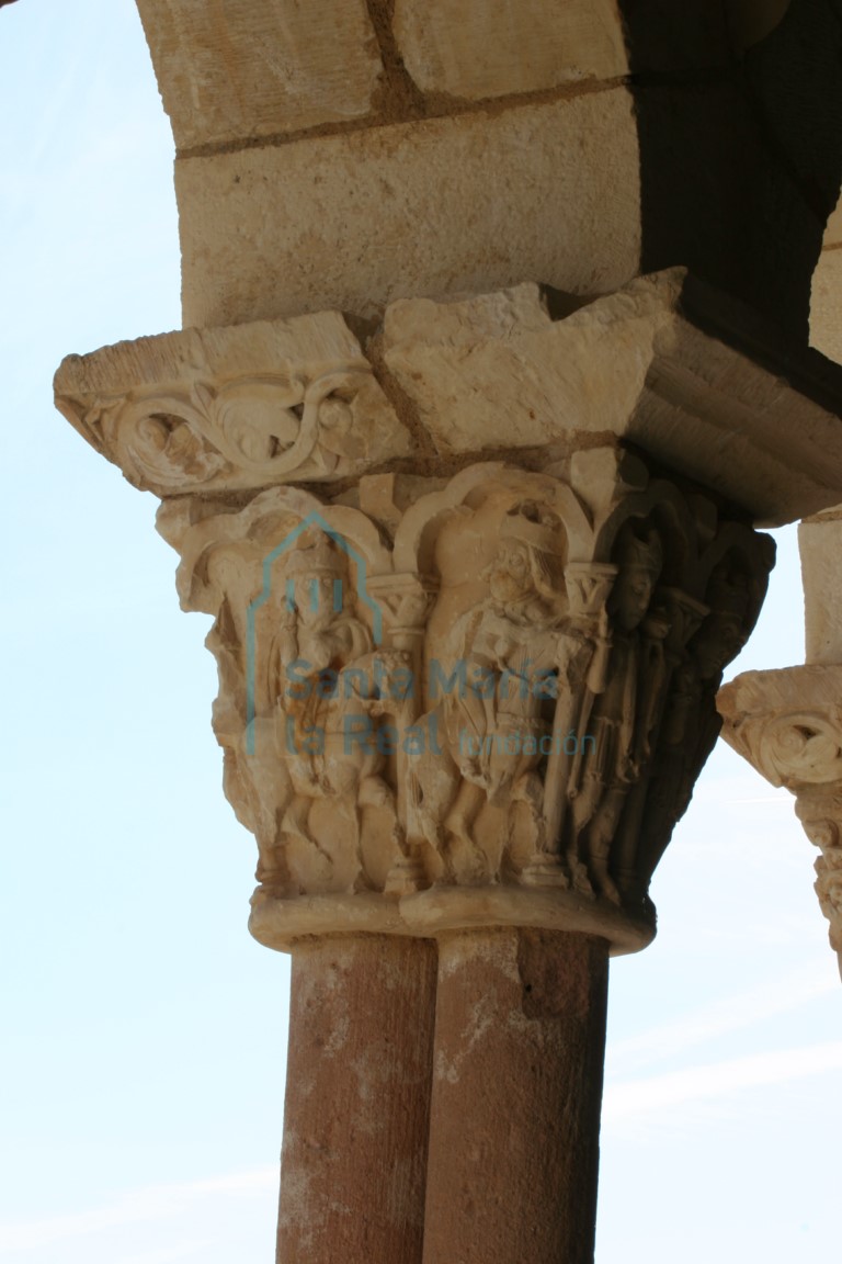 ES LA PARROQUIA DE LA ASUNCIÓN una de las iglesias rurales de mayor empaque y más interesantes de la provincia, tanto por la innegable riqueza de su apartado escultórico como por algunas de sus cualidades arquitectónicas. Sobre todo los primeros de tales atributos son responsables de que se la considere cabeza de una serie comarcal, bautizada como “taller de Duratón” por Inés Ruiz Montejo, y en la que se integran las iglesias de Sotillo, San Pedro de Gaíllos, Perorrubio, Santa Marta del Cerro, etc. La obra de dicha autora -fruto de su tesis doctoral y centrada casi exclusivamente en el estudio estilístico e iconográfico de la escultura- constituye la primera y principal aportación al conocimiento del edificio, seguida casi sin discusión por el resto de los autores que han escrito sobre el mismo, hecho que a la postre ha supuesto la práctica marginación del análisis arquitectónico. Presenta la iglesia planta basilical de generosas proporciones, coronándose la nave única con cabecera dividida en presbiterio y ábside semicircular, levantada en buena sillería de grandes bloques labrados a hacha, que en las zonas bajas alcanzan el medio metro de altura. Se alza sobre un banco corrido apenas resaltado en el bocel que lo remata, visible sólo al interior. Da paso al presbiterio un arco triunfal levemente apuntado -moldurado con dos baquetones y arista- y doblado hacia la nave por otro, también abocelado, que reposa en columnillas acodilladas en las jambas de los machones. Un guardapolvos de perfil abiselado exorna el triunfal, cuyos arcos descansan en gruesas columnas de basas áticas, con toro superior atrofiado, escocia recta y grueso toro inferior con bolas, piñas, lengüetas de caulículos o garras alancetadas, sobre plintos. Esta tipología de basa es común a todas las columnas de la cabecera. El presbiterio manifiesta en planta una cierta irregularidad de trazado, resultando así ligeramente trapezoidal. Sus muros laterales se animan con dos arcos de medio punto moldurados con boceles quebrados en dientes de sierra, doblados por cenefa de puntas de diamante ribeteadas de contario, apeando los arcos en columnillas acodilladas. Se cubre el tramo recto con una bóveda de crucería cuyos nervios, que repiten la molduración del arco triunfal, apean en columnas que se acodillan en los machones del arco y en los de los pilares que recogen el toral del hemiciclo. La antes señalada irregularidad en planta del espacio determina la del trazado de esta bóveda, especialmente notoria en su clave -ornada con una simple roseta- y en las piezas de los nervios inmediatas a ésta, recortadas a modo de cuñas para conseguir el encaje. El hemiciclo se cubre con una bóveda gallonada, generada por un toral de medio punto también moldurado con doble baquetón y arista, y reforzada por sólo dos nervios que, sin compartir clave, se entregan abruptamente a dicho arco. Estos nervios apoyan en gruesas columnas que dividen el tambor absidal en tres paños, correspondiéndose al exterior con contrafuertes prismáticos que se adelgazan en talud a la altura de los arcos de las tres ventanas abiertas en cada uno, y continúan hasta la cornisa. Constan las ventanas de rehechas saeteras de fuerte abocinamiento al interior, rodeadas tanto interior como exteriormente por arcos lisos de medio punto sobre columnas acodilladas y exornados por chambranas de triple hilera de billetes al interior y simple chaflán al exterior. Los cimacios de estos capiteles muestran perfil de listel y doble nacela, mientras que sus basas tienen perfil ático de grueso toro inferior con garras, sobre plintos. Los fustes, todos monolíticos, fueron en su mayor parte rehechos. Al sur del presbiterio se adosó una sacristía, eliminada por la restauración de los años setenta del siglo XX, que no obstante atestiguó su existencia manteniendo al interior el arco de medio punto que le daba acceso y, al exterior, la roza de la bóveda que la cerraba, cubierta que supuso la destrucción de la cornisa y canes del muro sur del presbiterio. Resulta sorprendente que la ligera diferencia de alturas entre la bóveda del presbiterio y la del hemiciclo no se manifieste al exterior, donde las sobrecubiertas están enrasadas. Los canecillos de la cabecera, de inferior calidad que los de la nave y distinta mano, muestran pencas de puntas avolutadas o acogiendo bolas, rostros humanos, un prótomo de felino devorando un personajillo del que sólo vemos las piernas, dos desgastados exhibicionistas, masculino y femenino, otra pareja en actitud procaz, etc. La profusión de columnas en el interior de la cabecera nos deja ante un rico muestrario de capiteles decorados con motivos figurativos y vegetales, en los que es posible distinguir, dentro de la cierta unidad del taller, al menos tres facturas distintas. En las cestas de las ventanas vemos, en la abierta en el paño septentrional, al exterior, una ruda arpía frontal de cabellera partida y alas explayadas y una pareja de zancudas afrontadas enredadas en follaje; al interior, los capiteles son vegetales, respectivamente de estilizadas hojas lobuladas recercando brotes acogollados uno, y piso inferior de palmetas y superior de brotes carnosos anillados el otro. En la ventana central vemos al exterior una pareja de estilizados grifos rampantes afrontados y a Sansón desquijarando al león, correspondiéndose dentro con un capitel de tallos anudados de los que penden palmetas y una pareja de descabezados équidos rampantes en el otro. Finalmente, en la ventana meridional del hemiciclo, al exterior uno de los capiteles muestra un mascarón monstruoso de afilados dientes devorando a un cérvido, mientras en el otro se dispone un enigmático personaje ataviado con túnica de acanalados y arbitrarios pliegues, que más parece un sudario, rodeado por tallos avolutados que dibujan una especie de mandorla vegetal. Los dos capiteles interiores, de superior calidad, se ornan con dos pisos de hojas
