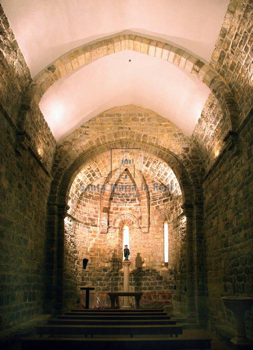 AUNQUE SE HA CONSIDERADO que el lugar de Itsasperri estuvo primitivamente poblado, su abandono debió de producirse todavía en la Edad Media. No se conocen ni documentos ni restos arqueológicos que puedan confirmar un hipotético poblamiento en torno a la iglesia. Sea como fuere, el templo erigido es el más antiguo de la comarca, y como tal ha ocupado desde siempre un papel central en la vida cotidiana de las gentes del valle. De hecho, la vinculación sentimental, administrativa y litúrgica de la iglesia de Santiago de Itsasperri y los vecinos de Val de Araquil es profunda y antigua. Además de San Isidro y numerosas romerías de cada concejo, se celebra allí durante la festividad de Santiago el día del valle. Hasta hace unos treinta años, el ayuntamiento congregaba en la iglesia sus sesiones plenarias; de hecho, la titularidad del templo pertenece a la municipalidad del valle. El inventario elaborado por el Gobierno de Navarra, con motivo de la segregación de Irurzun como municipio independiente, señalaba la ermita de Santiago como Casa Consistorial. En fechas recientes, consistorio y arzobispado han alcanzado un acuerdo que facultaba a la diócesis a organizar el culto y su liturgia con plena libertad. Desde los primeros años ochenta del pasado siglo ha sido protegida como bien cultural, restaurándose y rehabilitándose en profundidad. Se ha intervenido sobre todo en las cubiertas de la nave, la portada sur y la consolidación de algunos lienzos murales exteriores con sus respectivos contrafuertes. La planta del templo se nos presenta hoy regular y homogénea. Completamente desembarazada de añadidos perimetrales, destaca por su cabecera semicircular, profunda y peculiar, y el enorme desarrollo y potencia de los estribos que refuerzan el muro norte. Cada contrafuerte señala la división interna de nave y cabecera. Efectivamente, son tres los tramos rectangulares e iguales que conforman la nave. La ausencia de soportes interiores allí se conjuga con los pilares con semicolumna adosada que soportan el de embocadura del presbiterio. La definición planimétrica del ábside, algo más estrecho, es curiosa e irregular; el cierre semicircular sigue su perímetro mural en continuidad con un anteábside trapezoidal. Da la impresión de ser una versión un tanto desnaturalizada y popular de los presbiterios con ábsides y anteábsides característicos del románico pleno. Como es habitual, la puerta principal se abre a un poderoso paramento adosado al tramo intermedio del muro sur de la nave. Una segunda puerta, de menores dimensiones y aparato decorativo, horada el muro del hastial. Las amplias dimensiones generales del templo lo definen como una construcción rural de cierto empeño. Su longitud total es de 18 m por 6,4 en la nave y 5,7 en la parte más ancha de la cabecera. Una vez dentro, la amplitud del volumen construido es subrayada por el incontestable protagonismo del perímetro mural, prácticamente sin vanos y con hiladas regulares y continuas de sillares oscuros sin facetar. El resultado es rotundo, de una textura ruda y expresionista. Lógicamente los paramentos irían primitivamente lucidos y pintados. La división planimétrica observada entre cabecera y nave se refuerza también en el interior, con una mayor altura y anchura para la segunda. Como es habitual, la parte más articulada desde el punto de vista arquitectónico es el presbiterio. Se cubre mediante cañón ligeramente apuntado y bóveda de horno, muy rebajada, que se refuerza mediante dos semiarcos de sección cuadrada. Estos apean en ménsulas de un sólo lóbulo, fino baquetón y listel. Los semiarcos confluyen sobre la misma bóveda del exordio trapezoidal. En la práctica, su luz es menor que la del horno, por lo que actúa como un fajón continuo de rosca asimétrica. Si nos fijamos con detenimiento en la articulación de las bóvedas del presbiterio, son patentes las irregularidades propias de una concepción arquitectónica ya alejada de los modelos que iniciaron el tipo. Los vanos superan la imposta que corre por el presbiterio a la altura de los cimacios de las ménsulas, por lo que el muro sigue recto más allá del arranque de los dos semiarcos. Éstos deben embutirse en él hasta la altura de sus riñones, punto donde verdaderamente se inicia la semiesfera rebajada. Este insólito sistema de adecuación de vanos, muros y bóvedas recuerda al ábside de la ermita de Eunate; no obstante, su fisonomía general, así como el encuentro de los semiarcos y la bóveda del preámbulo absidal, viene a coincidir con otros ejemplos característicos del último románico rural, como la parroquial de Santa Catalina de Muniáin en Guesálaz, al otro lado de las sierras de Andía y Satrústegui. La bóveda de la nave, algo más elevada que la cabecera, es de cañón apuntado con fajones de sección rectangular. En la actualidad los dos tercios superiores aparecen lucidos, ya que fueron recuperados durante las últimas obras de restauración. De sus cimacios parte una imposta decorada con bolas que recorre los muros laterales. Se refuerza mediante dos fajones de sección rectangular, que apean en cuatro ménsulas iguales, simples pero originales. Va reduciendo su volumen desde el cimacio en dos piezas: la superior, con listel seguido de dos rollos; la inferior, con listel y un solo rollo. El arco triunfal, doblado y levemente apuntado, apea sobre pilares con semicolumnas adosadas; hacia la cabecera el escalonamiento del pilar se enjuga con el estrechamiento del ábside, por lo que la semicolumna se monta sobre su muro de cierre. Los dos capiteles, únicas referencias escultóricas del interior, acogen decoraciones bastantesimplificadas y deterioradas, con dos niveles de hojas hendidas y lisas con bolas. El del lado norte acoge en los ángulos del primer nivel animales monstruosos con sus patas hacia el collarino; en los superiores se adivinan hojitas incipientemente naturalistas. Por el otro lado los animales