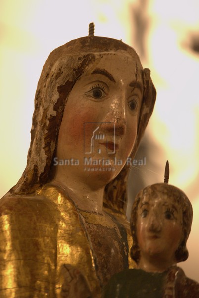 Detalle de los rostros de la Virgen y Niño Iglesia de San Pedro Gallocanta Sin información Más información sobre Detalle de los rostros de la Virgen y Niño