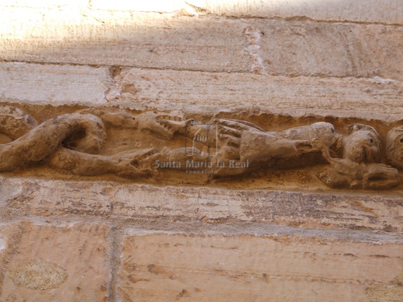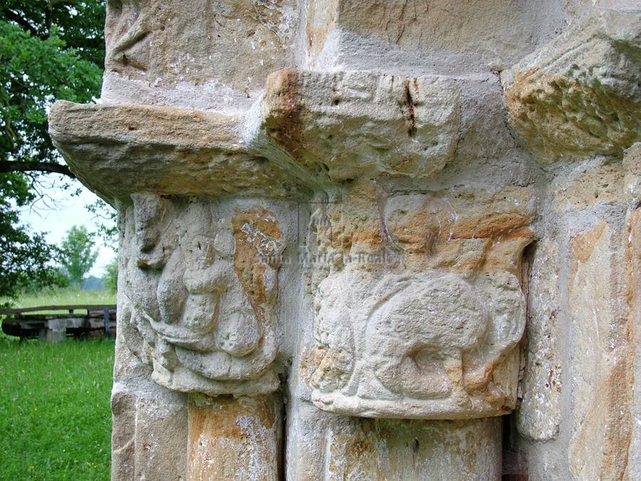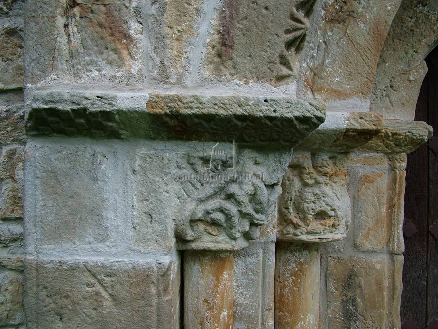 Detalles del cimacio y capitel izquierdo de la portada sur